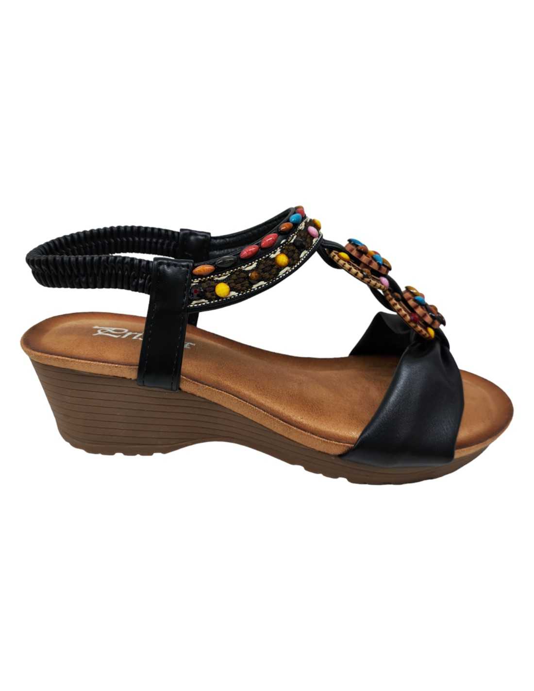 Cuñas con cuentas de madera decorando el empeine y elástico trasero para calzar.