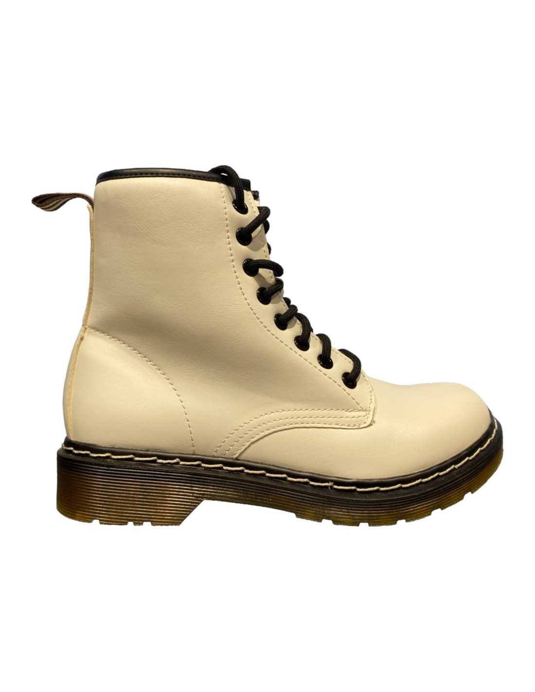Botín militar de suela dentada con cierre de cordones y punta redonda.