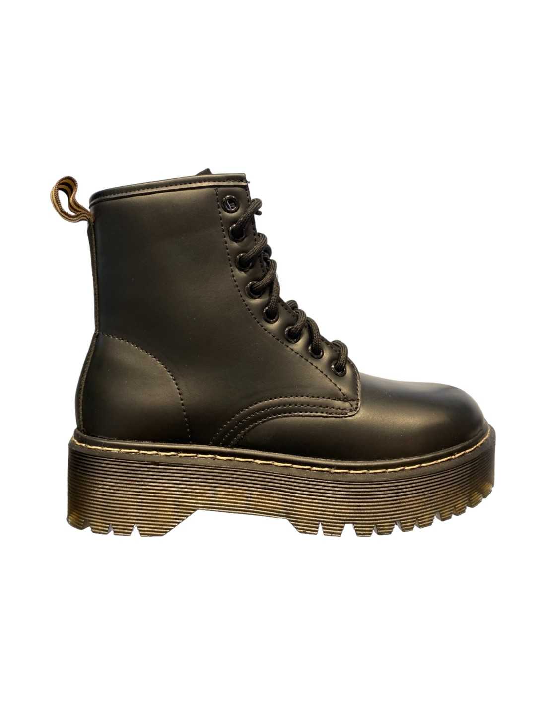 Botín militar de suela dentada de plataforma con cierre de cordones y punta redonda.