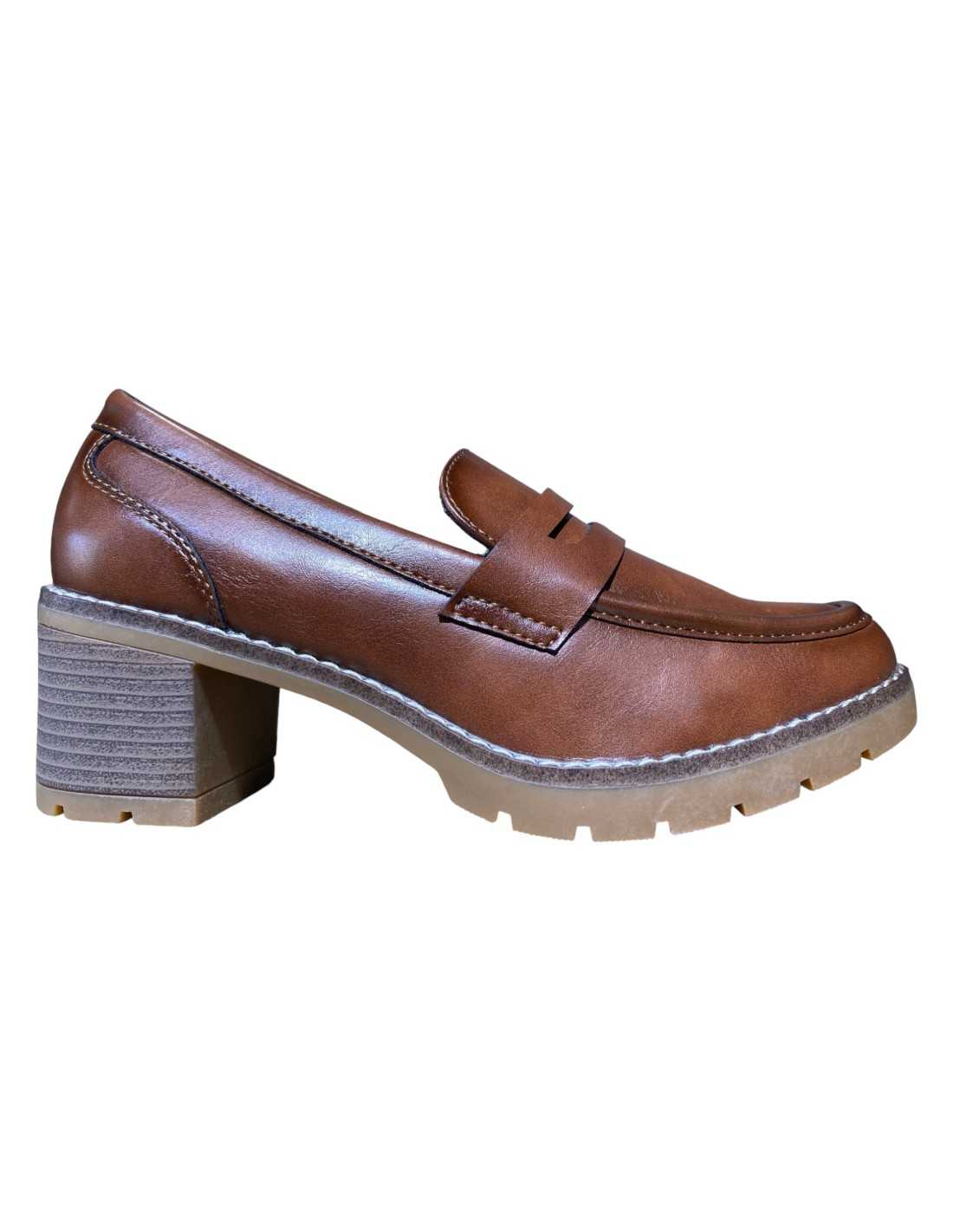 Zapatos de tacón cuadrado con antifaz al tono y suela dentada.