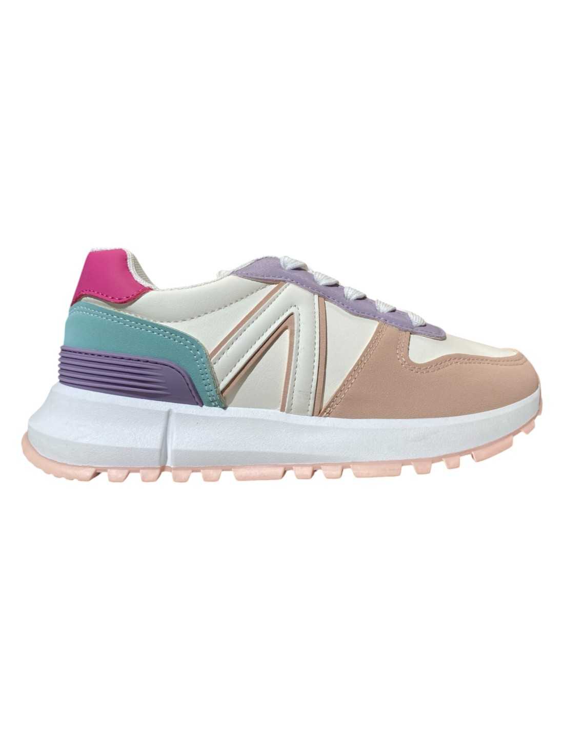 Deportivos combinados con adorno metalizado en lateral con cierre de cordones.
