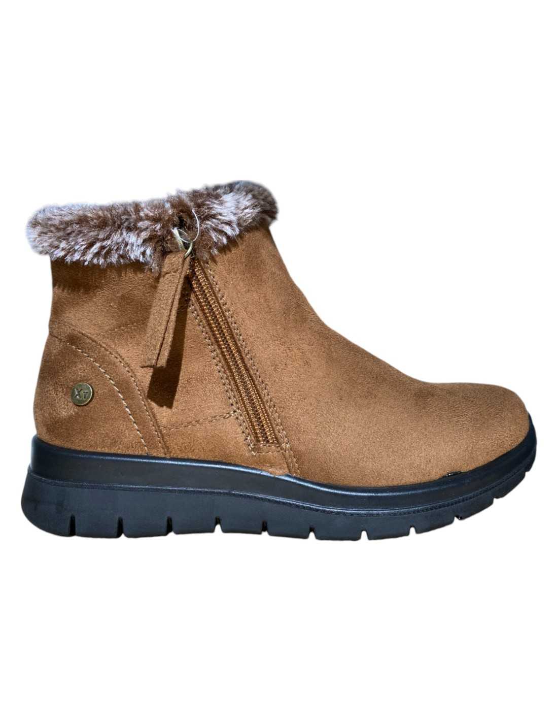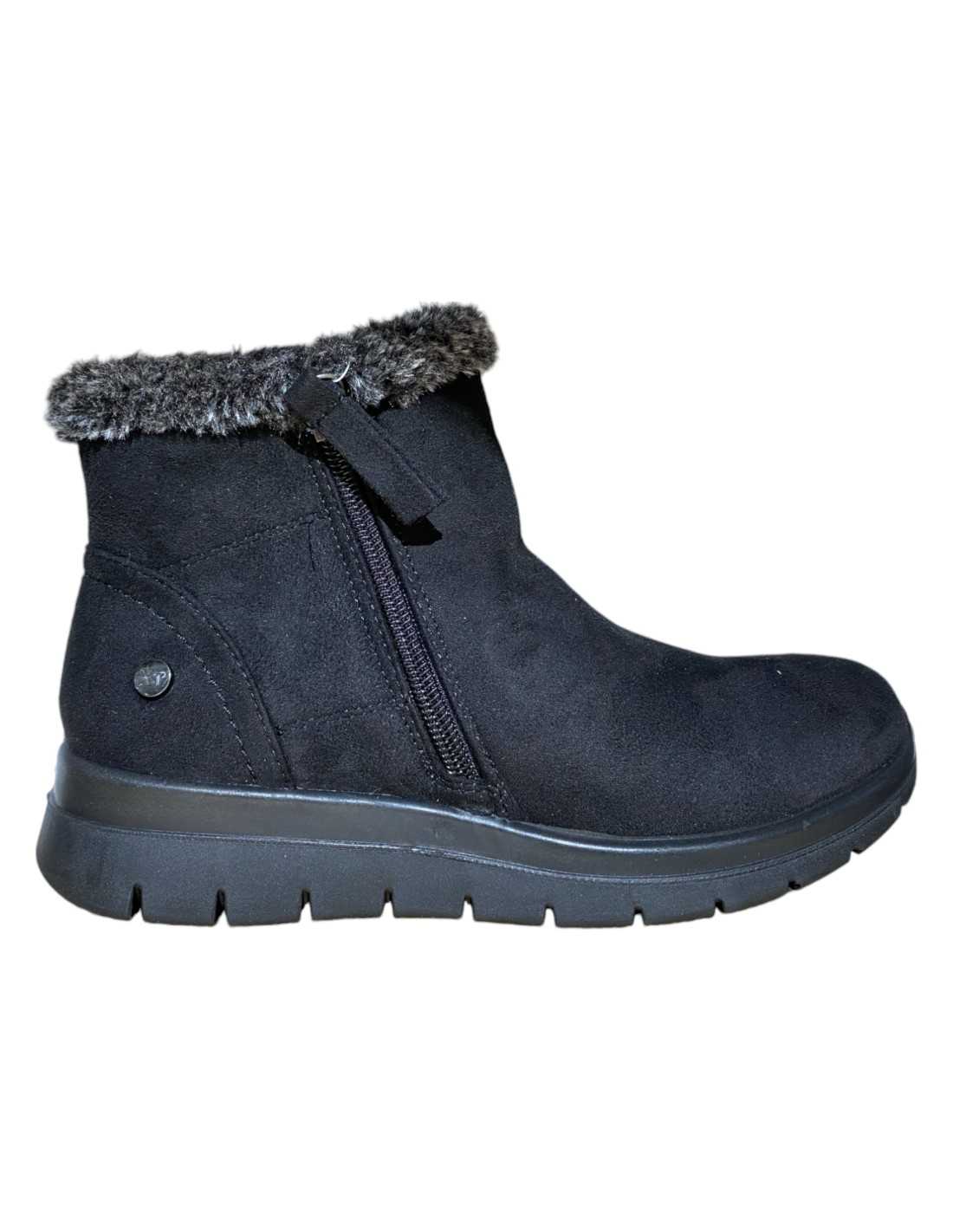 Botines de antelina con pelo sintético en tobillo. Cierre de cremallera.