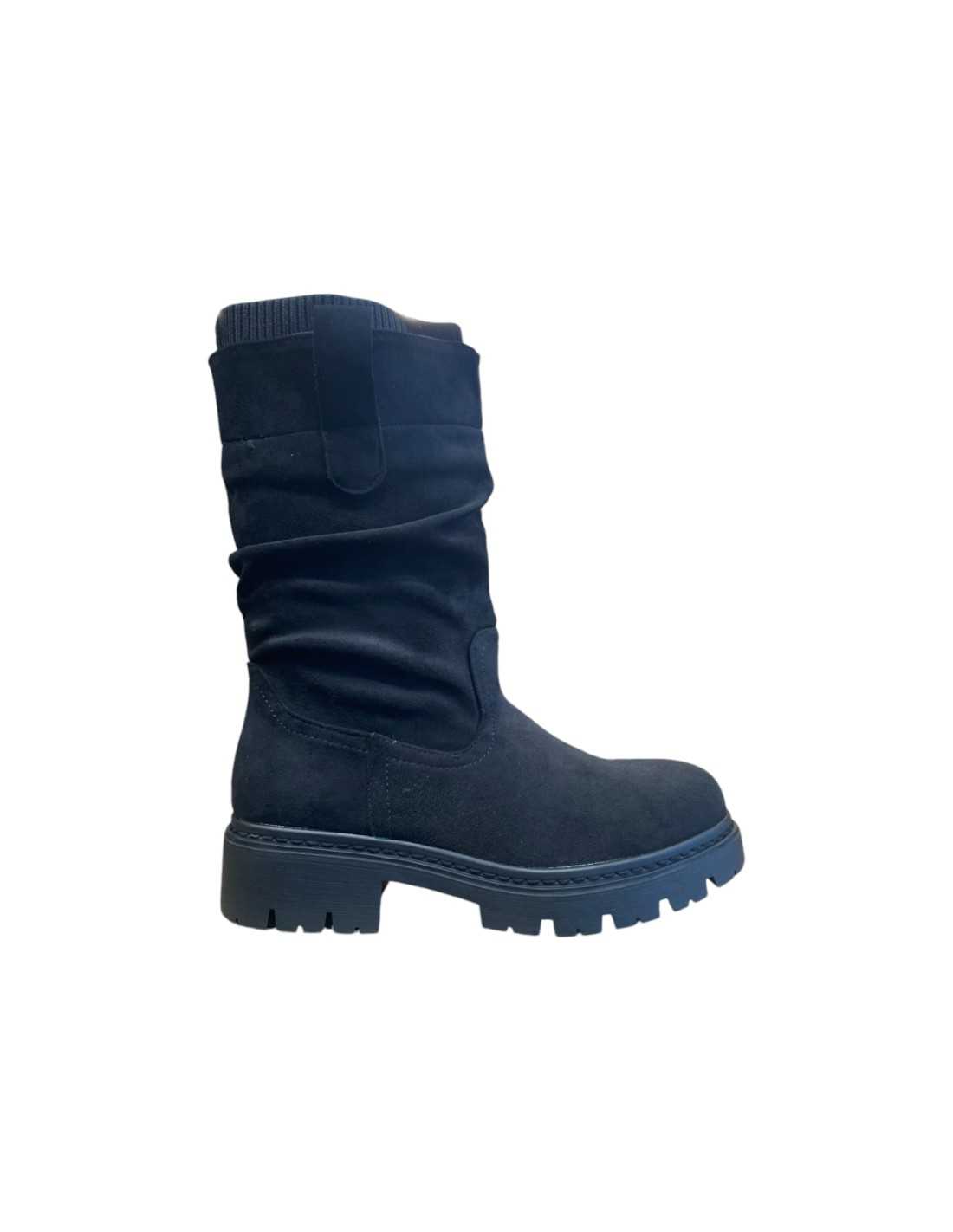 Botas de antelina con caña arrugada y suela y tacón dentados. Calceta interior.