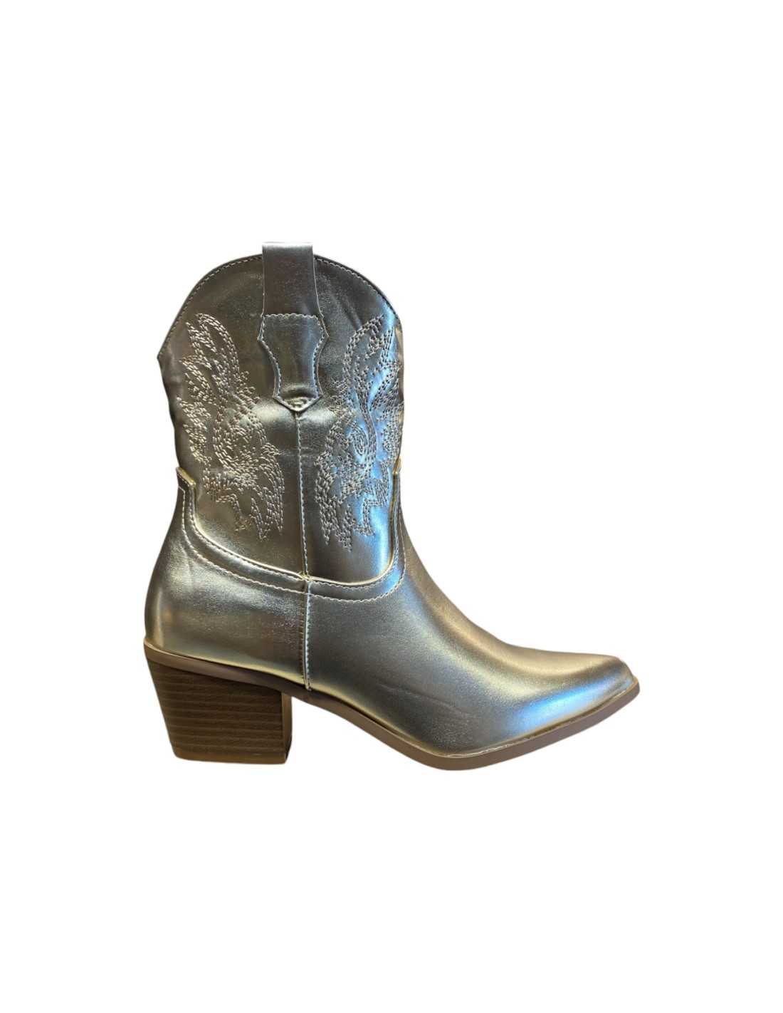 Botines de estilo cowboy con costuras en empeine y caña. Punta fina y tacón cuadrado.