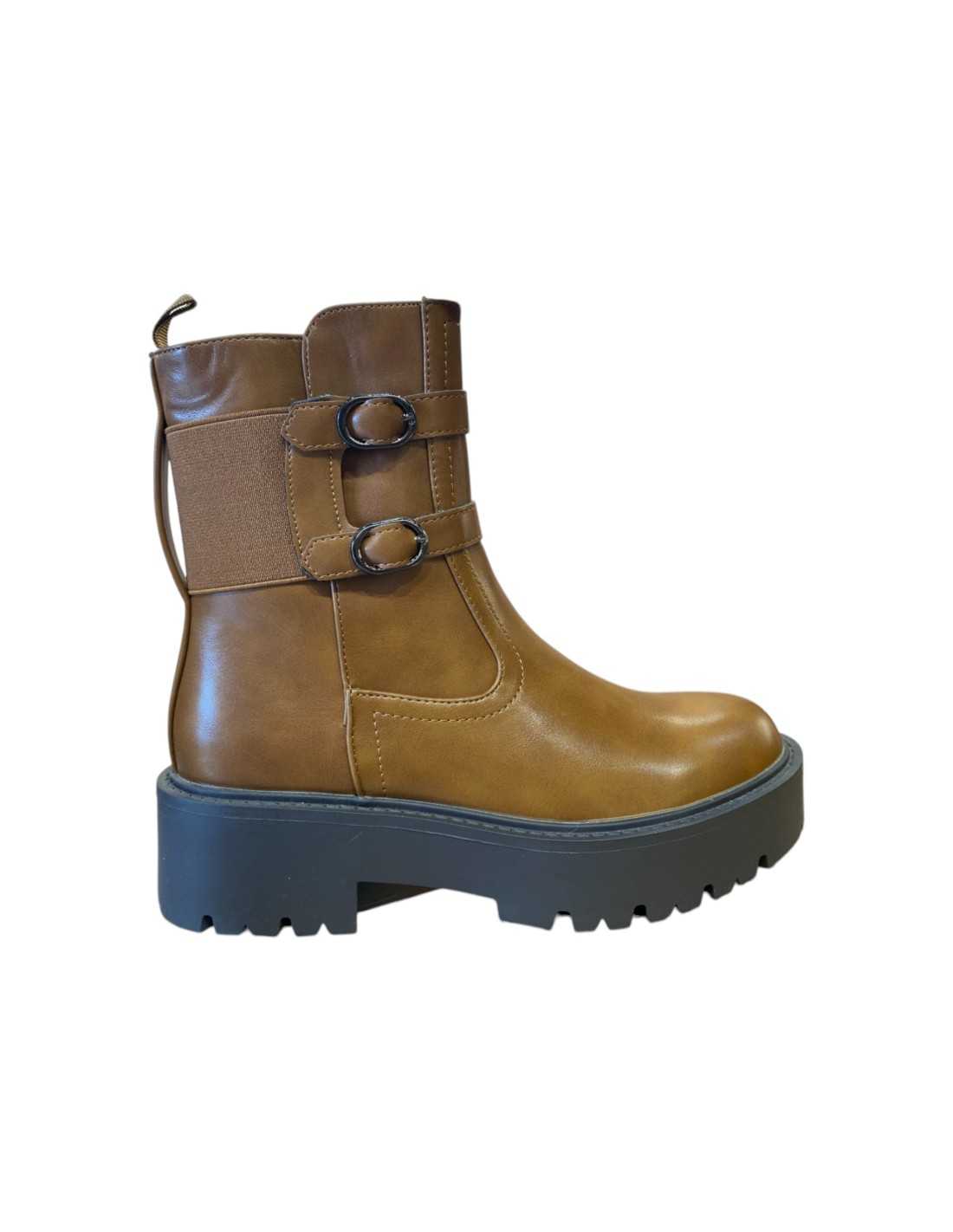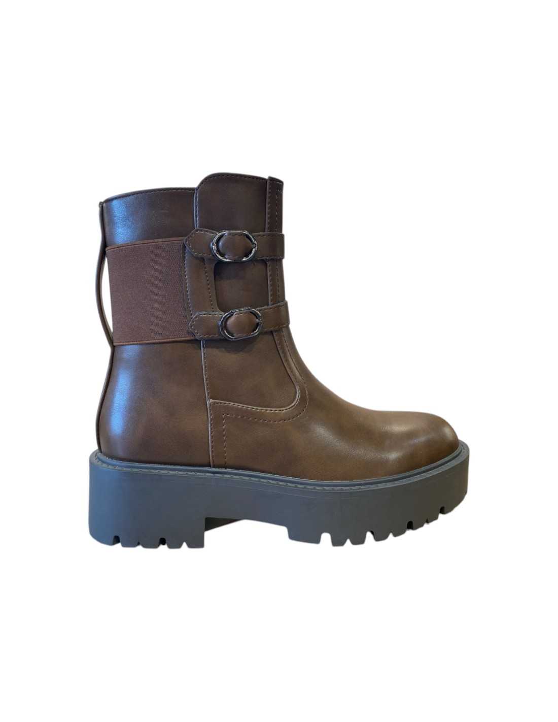 Botines con tacón alto y suela dentada. Cremallera decorativa para el cierre.