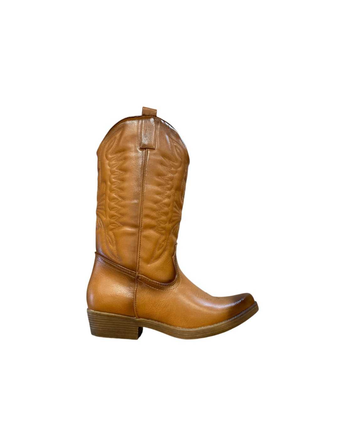 Botas con punta fina y tacón bajo. Caña y empeine bordados al tono.
