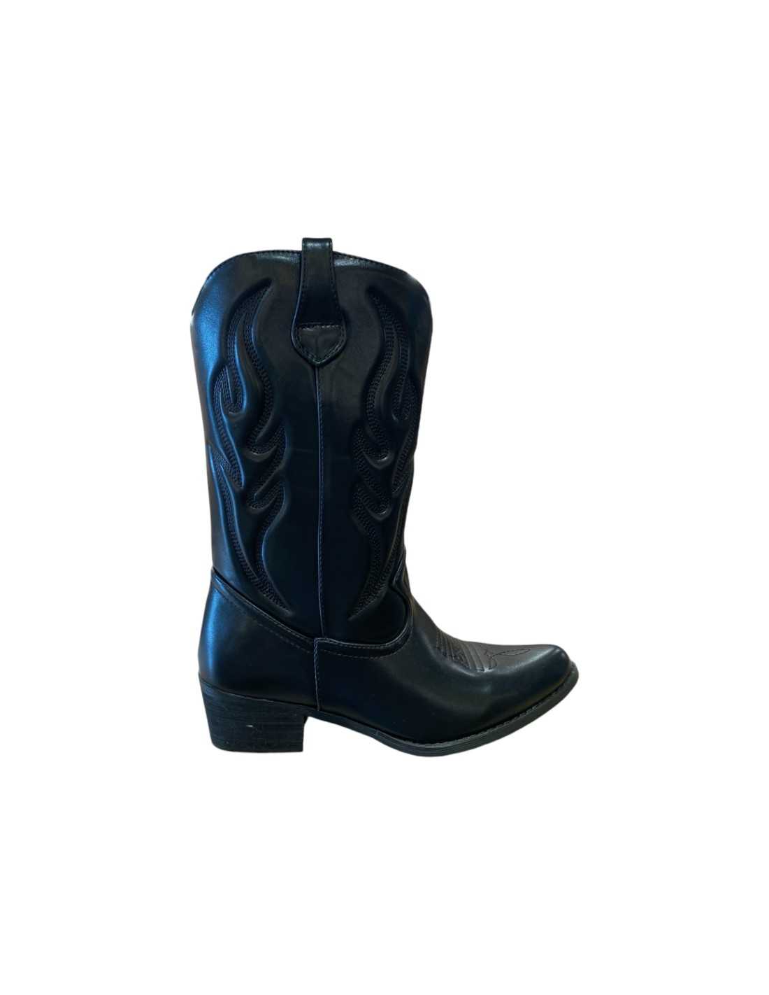 Botas con tacón de madera cuadrado, y caña decorada con strass. Punta fina y cierre de cremallera.