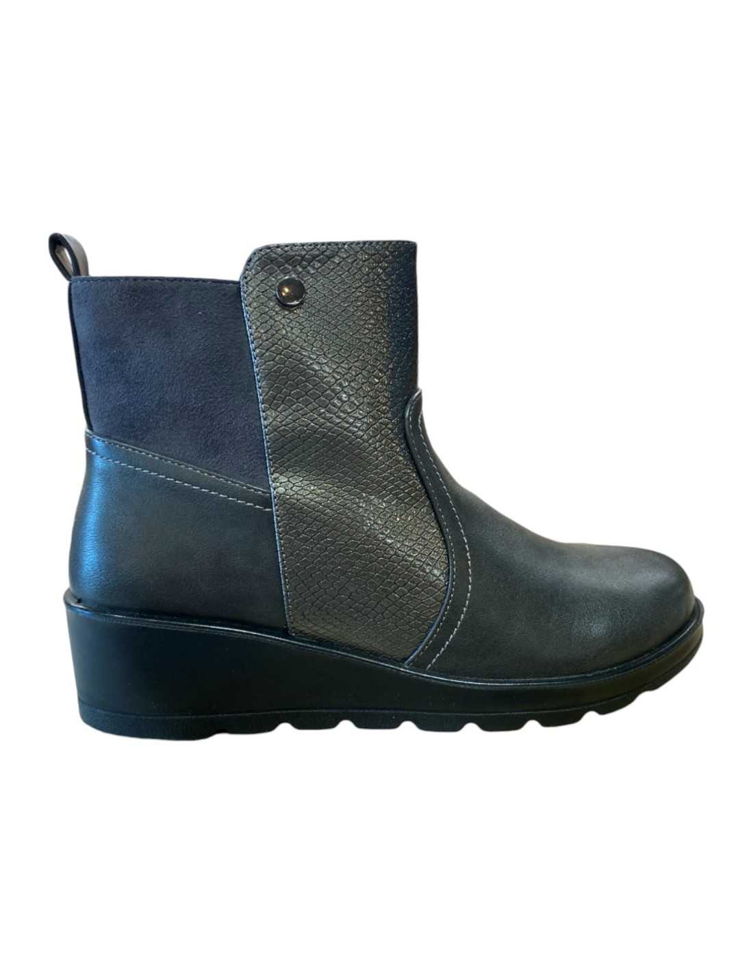 Botines con cierre de cremallera, cuña y piezas combinadas.