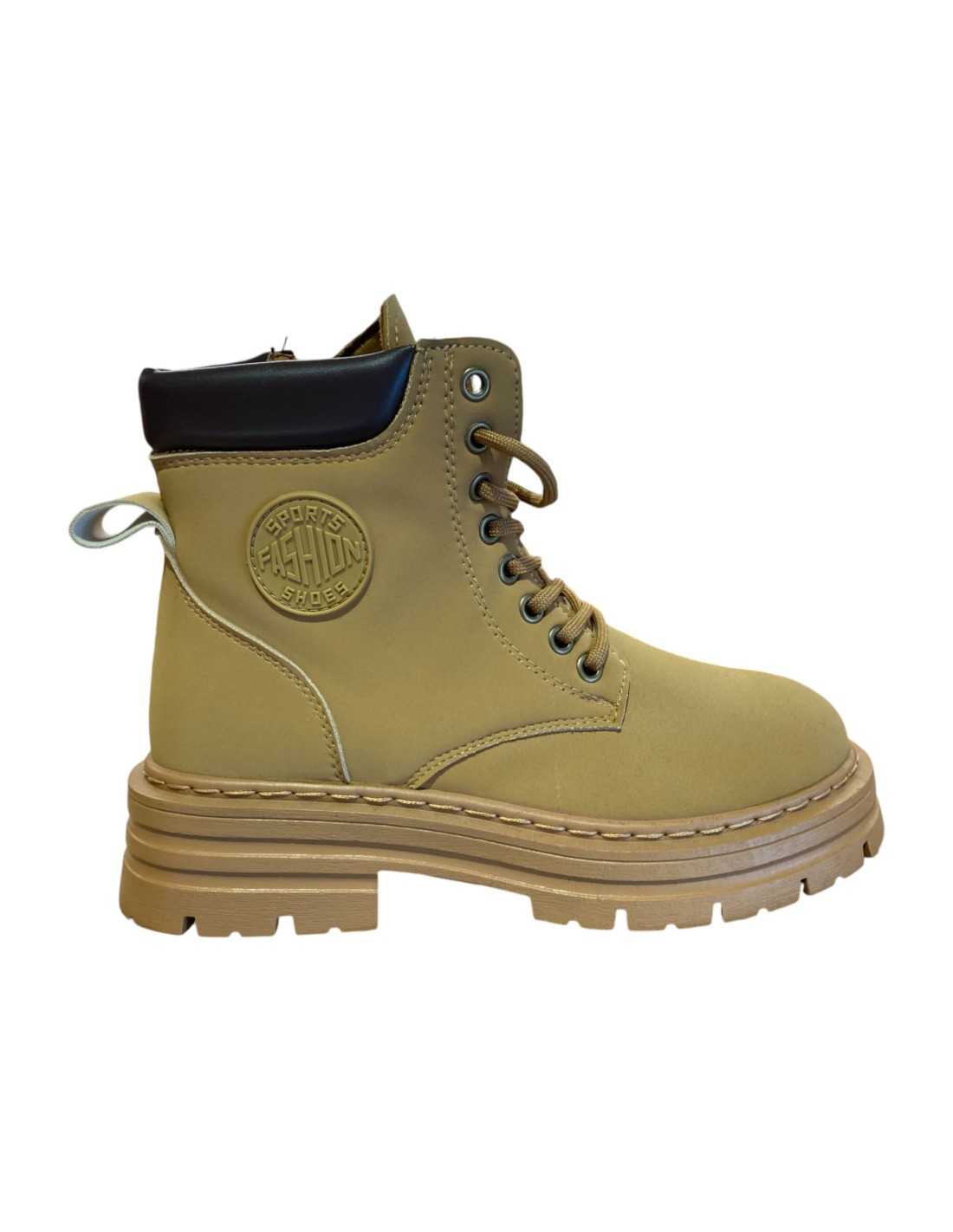 Botines, estilo safari, con tacón combinado, cierre de cordones, y suela y tacón dentados.