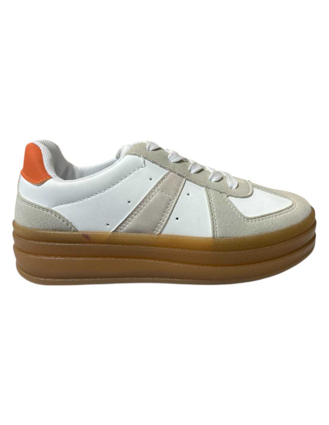 Deportivos con doble plataforma en crepé, combinando con serraje la punta y el talón.