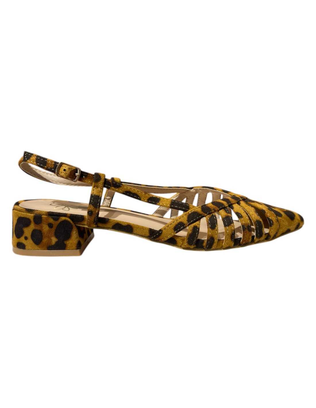 Zapatos de tacón bajo, punta fina y tiras trenzadas sobre empeine. Destalonados.