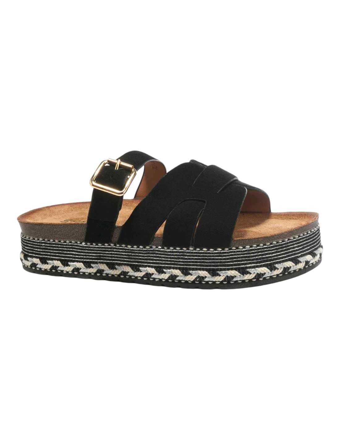 Sandalias de plataforma con planta bio, y pala de antelia trenzada y con tira de cierre de hebilla.