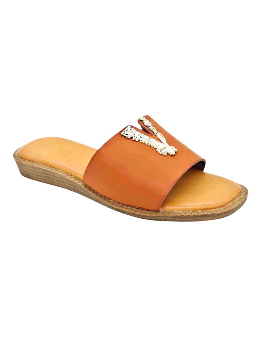 Sandalias planas de pala con uve decorativa en strass. Suela confort.