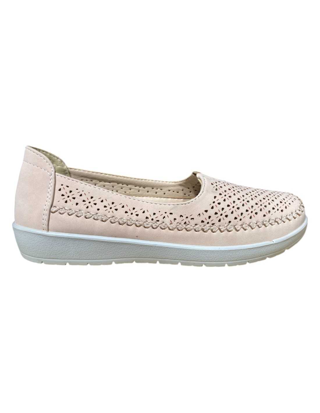 Zapato calado de cuña con plata confort.