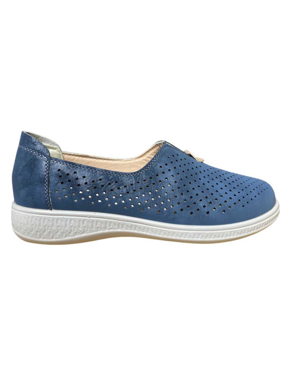 Zapatos planos calados con cierre frontal y planta cómoda.