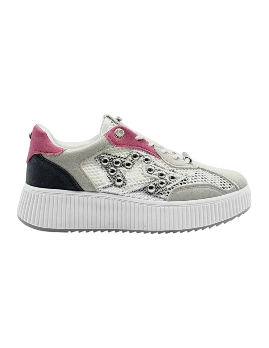 Deportivos con suela alta y cierre de cordones. Tachuelas laterales decorativas.