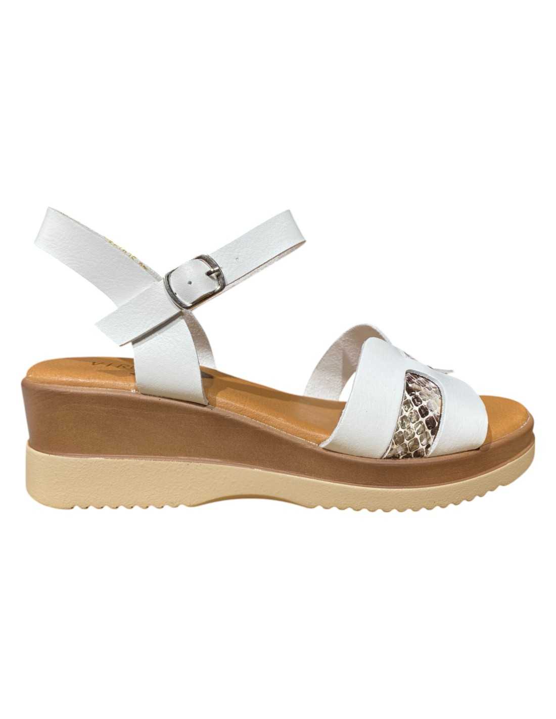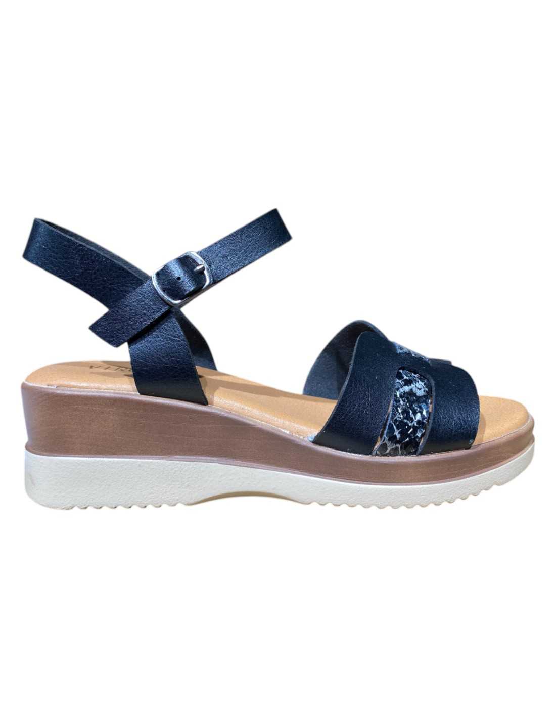 Sandalias de plataforma, con cuña bicolor, y nudo en empeine. Cierre de hebilla trasera.