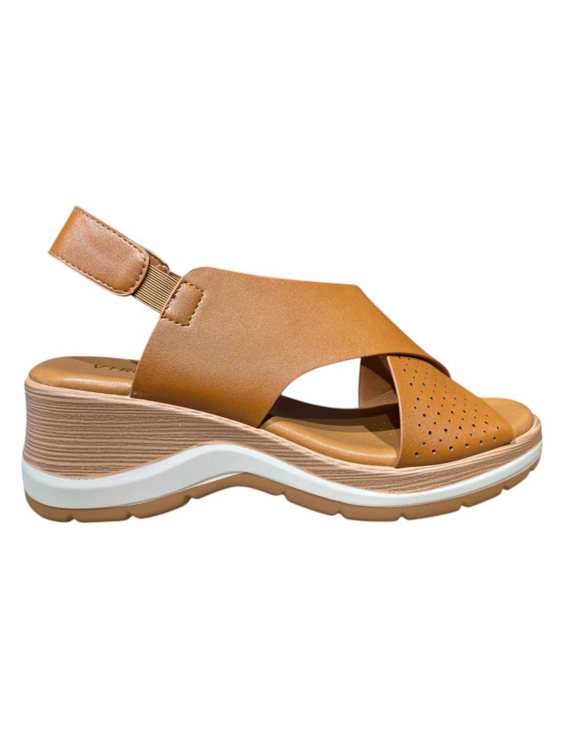 Sandalias de plataforma con cuña, pala cruzada y cierre de velcro trasero. Suela bicolor.