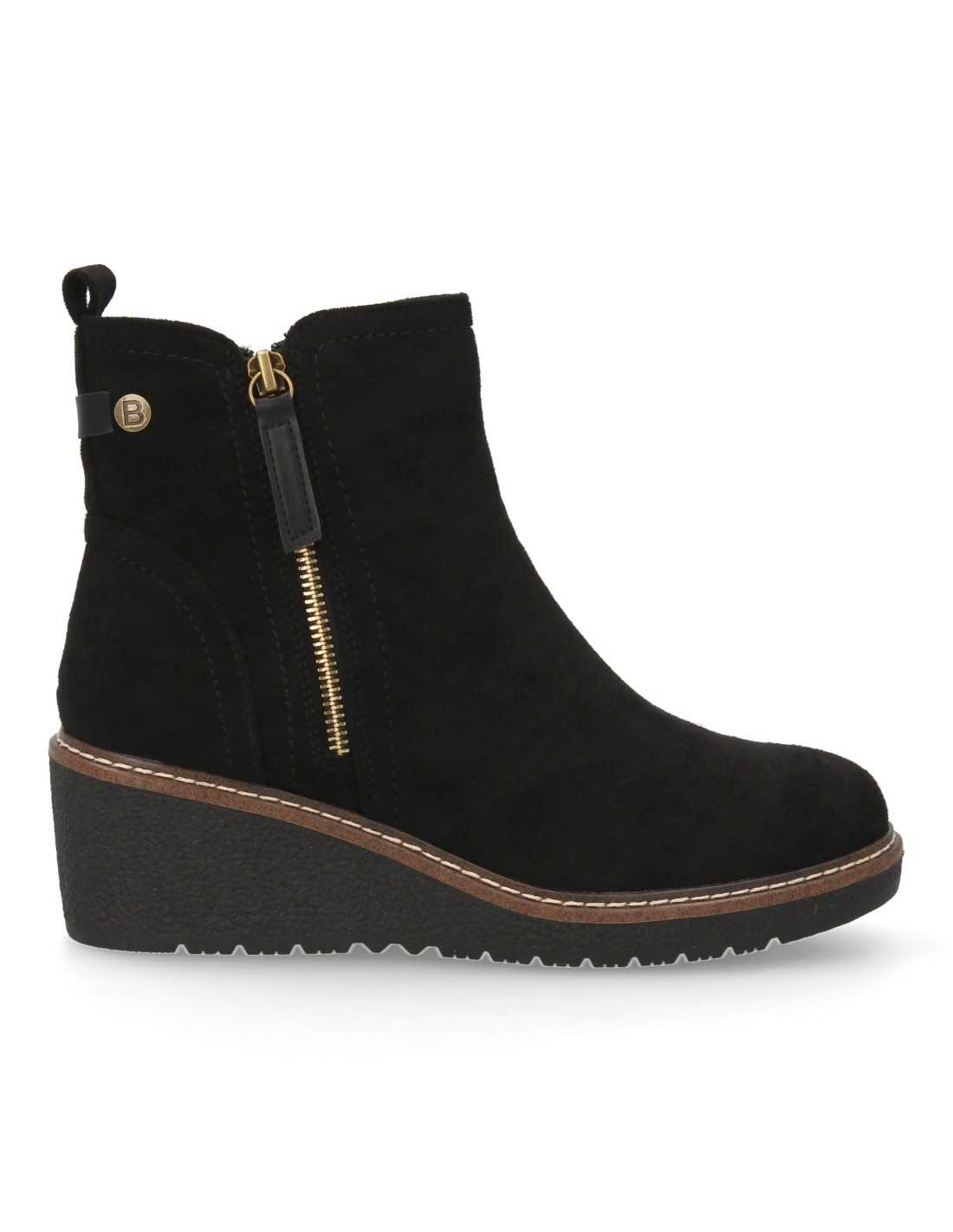 Botín de cuña para mujer, cómodo y diseño elegante. Detalles de costura con cierre de cremallera, tirador trasero.
