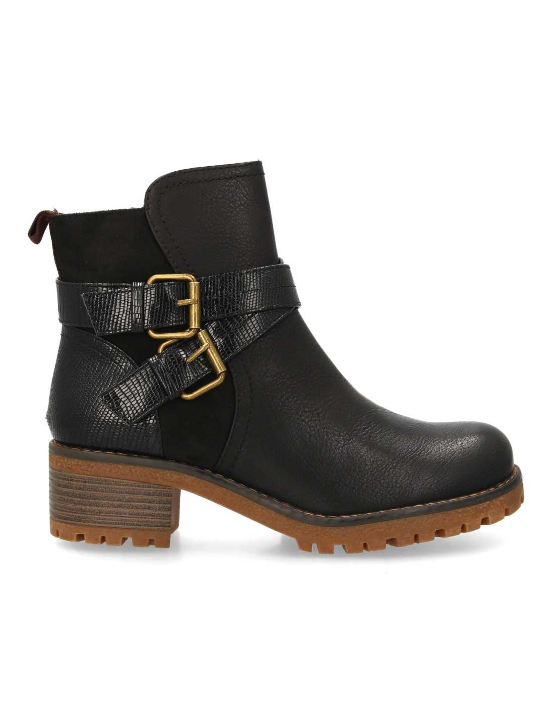 Botín de tacón con suela de goma dentada y cierre de cremallera. Punta redonda para mayor comodidad y cierre de cremallera.