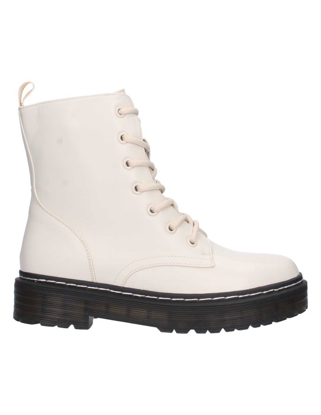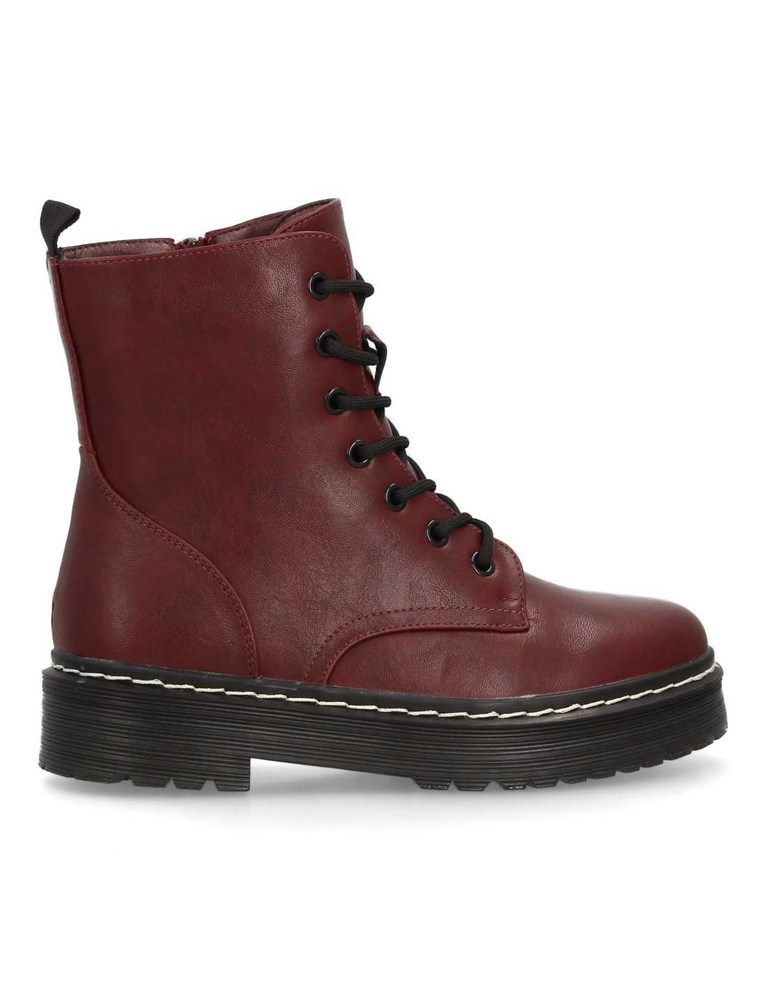 Botines de estilo militar con cierre de cordones, punta redonda, y suela dentada.
