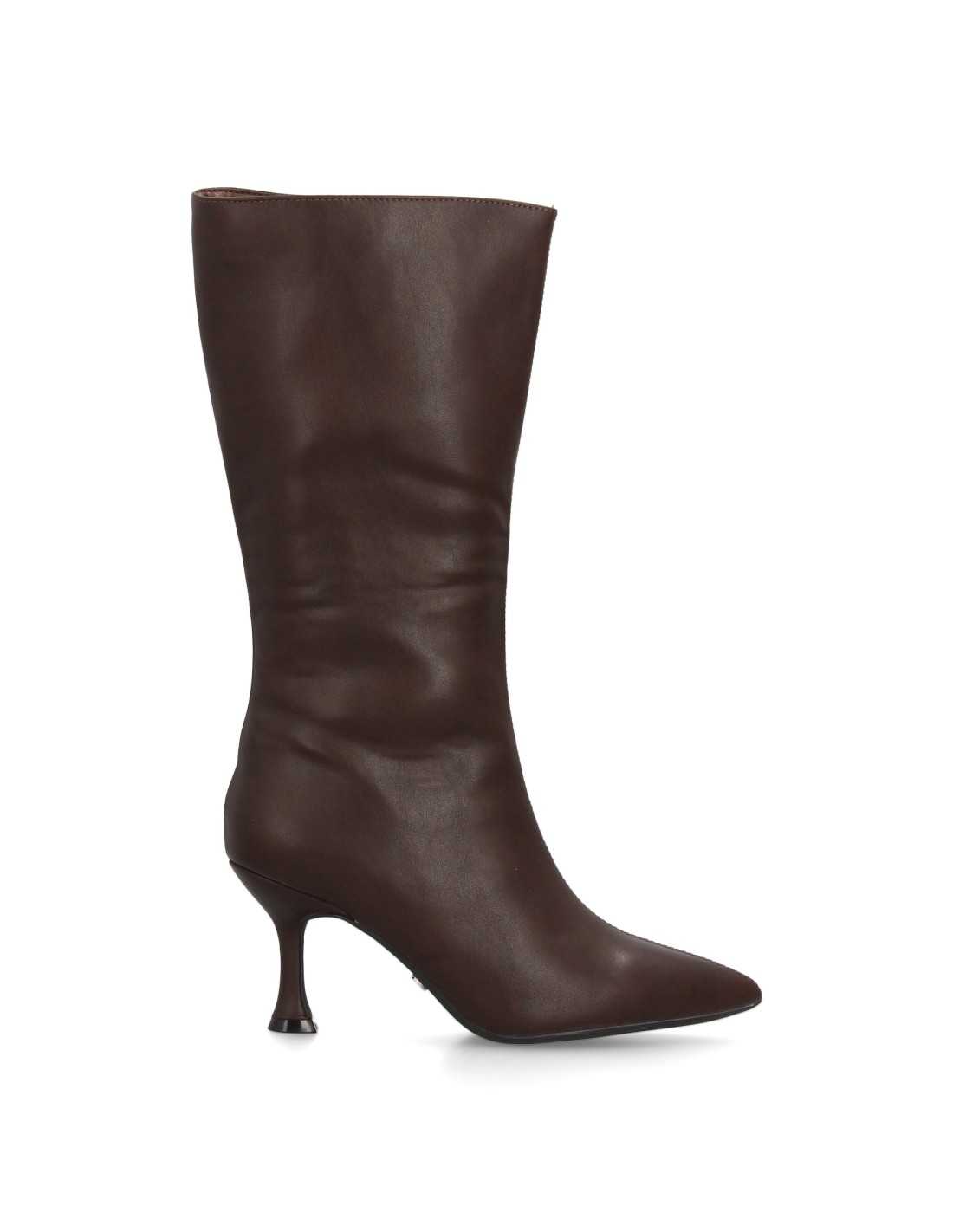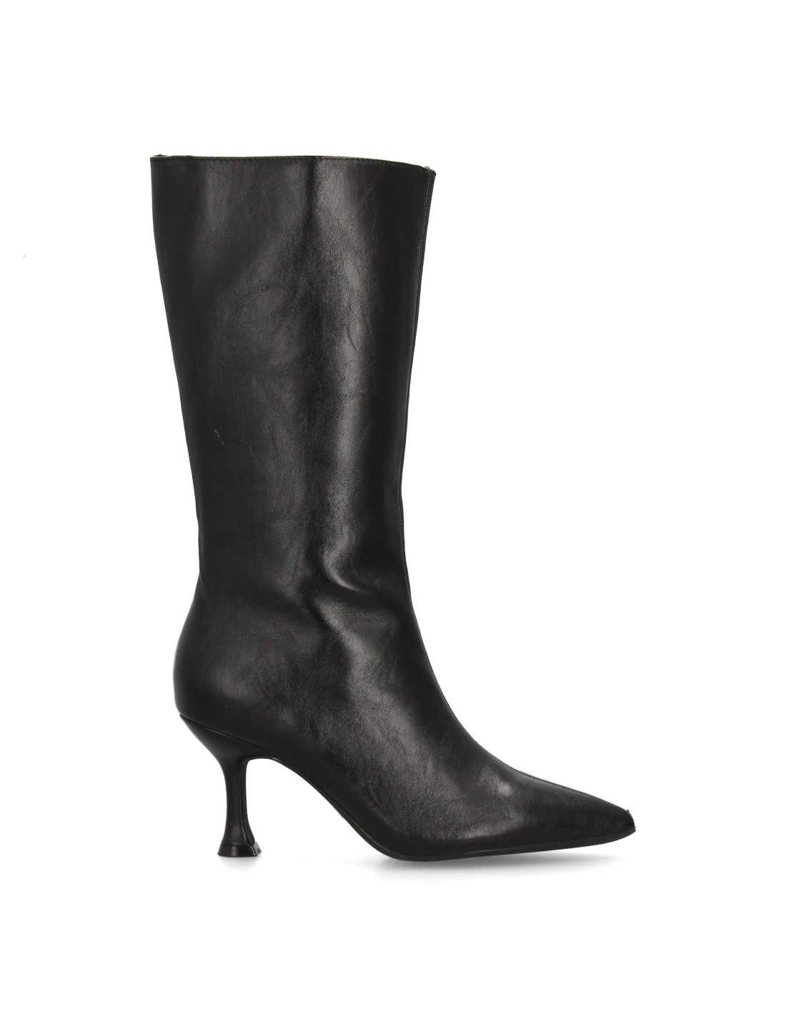 Bota alta de caña media con cierre de cremallera y tacón y punta finos. Diseño sofisticado, muy actual