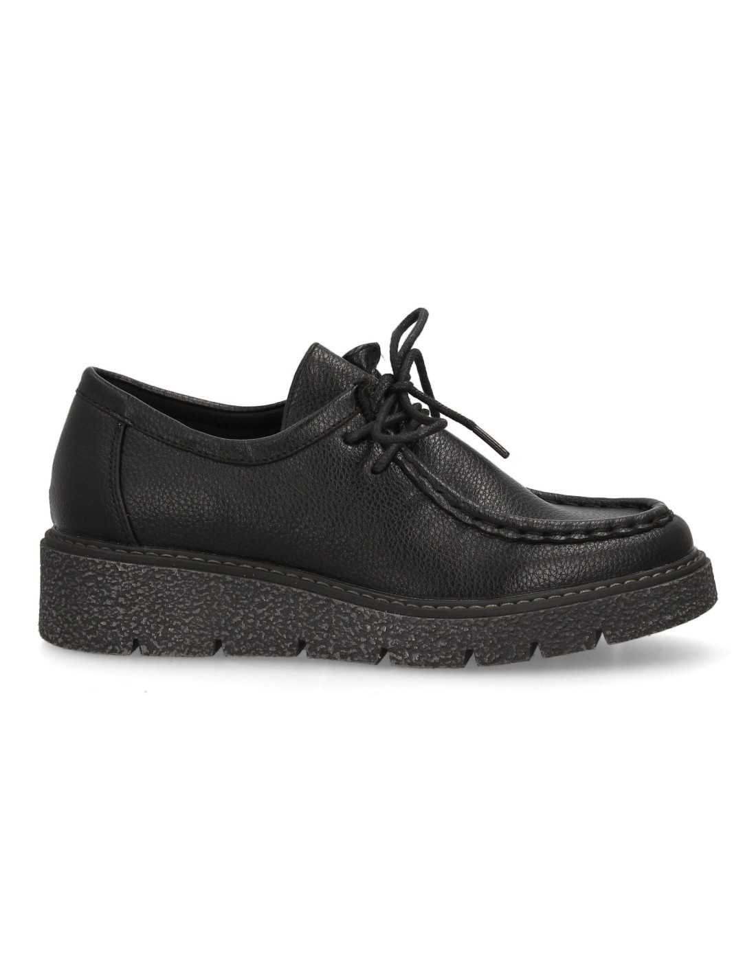 Mocasín con cuña y cierre de cordones. Diseño cerrado de suela gruesa para máximo confort.
