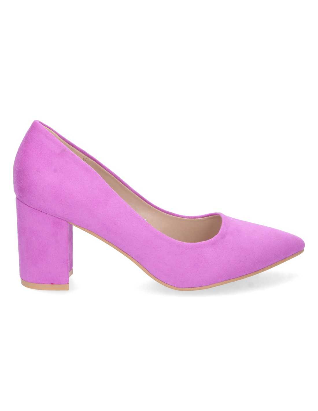 Zapato de tacón, estilo salón, cómodo con tacón ancho y punta fina.