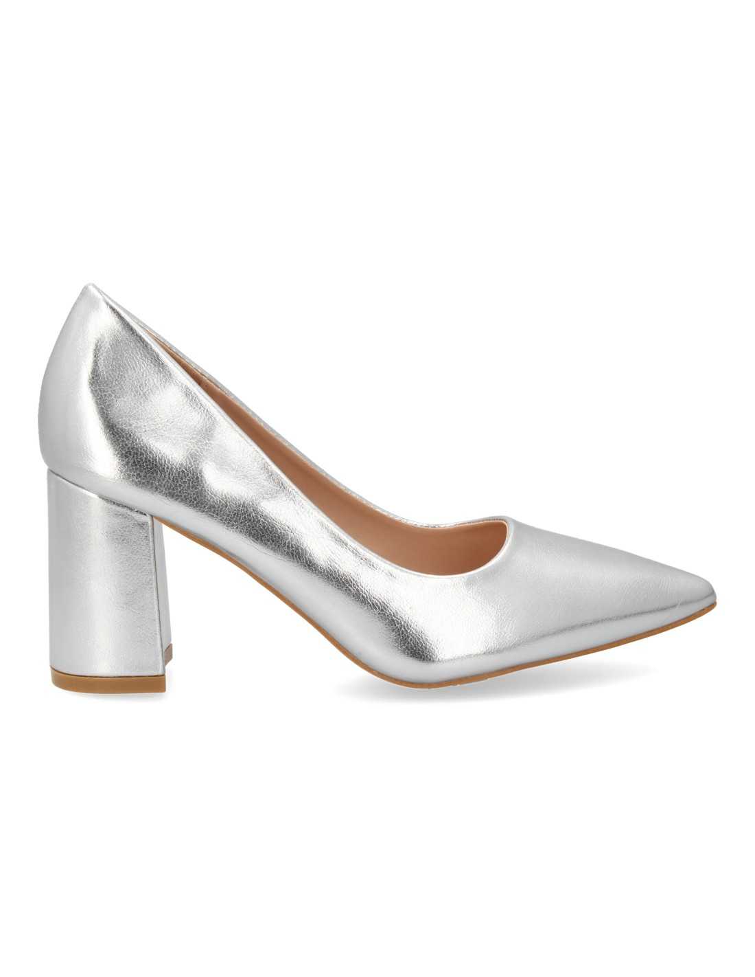 Zapato de tacón, estilo salón, cómodo con tacón ancho y punta fina.