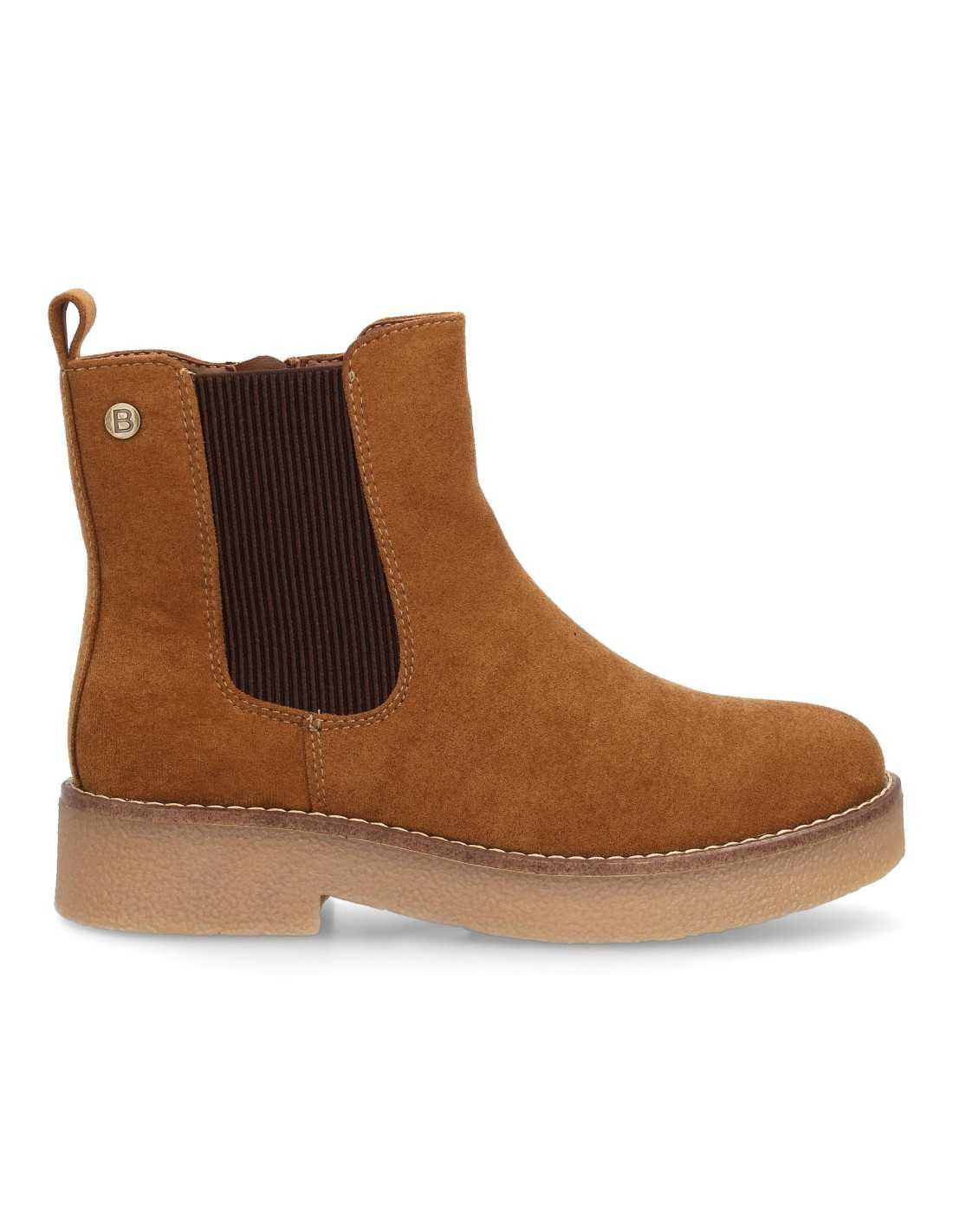 Botín estilo chelsea para mujer, con caña baja y diseño con elásticos laterales de canalé y cremallera interior.