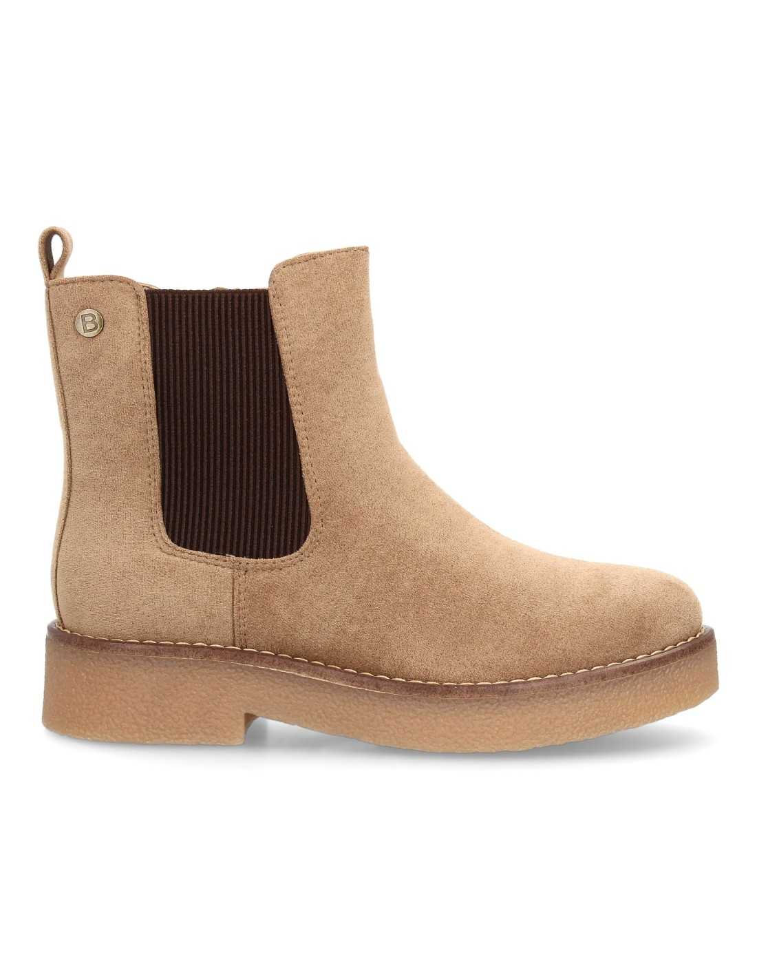 Botín estilo chelsea para mujer, con caña baja y diseño con elásticos laterales de canalé y cremallera interior.