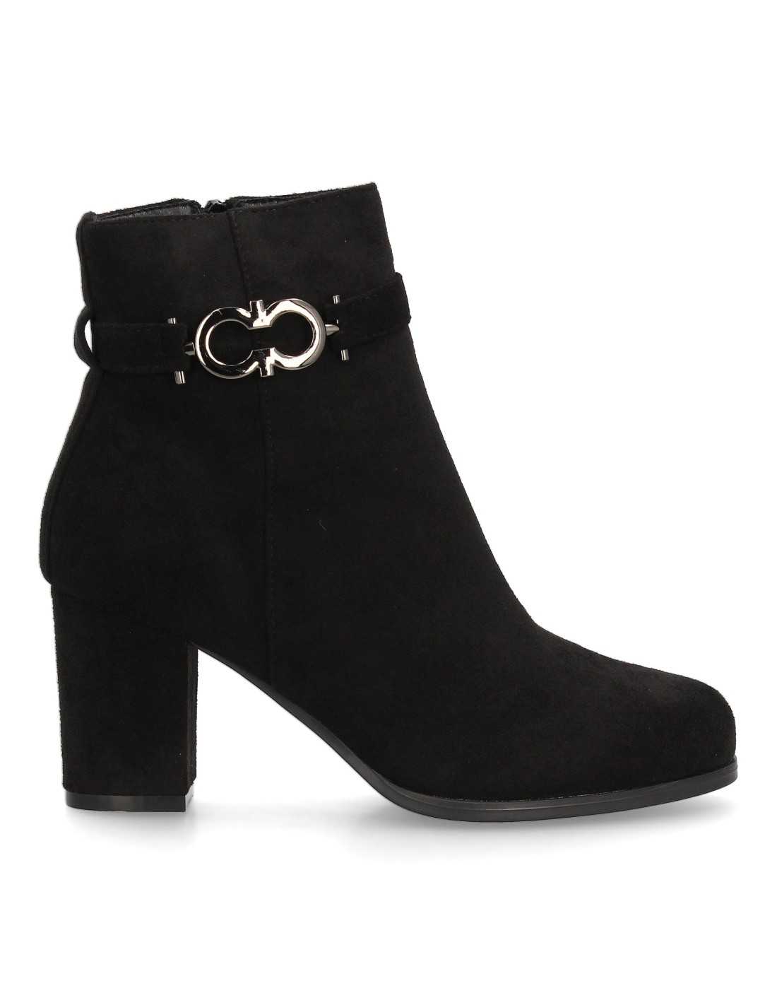 Botín de estilo chelsea para mujer. Diseño decorado con tachuelas metálicas, suela gruesa y dentada. Cierre lateral con cremallera.