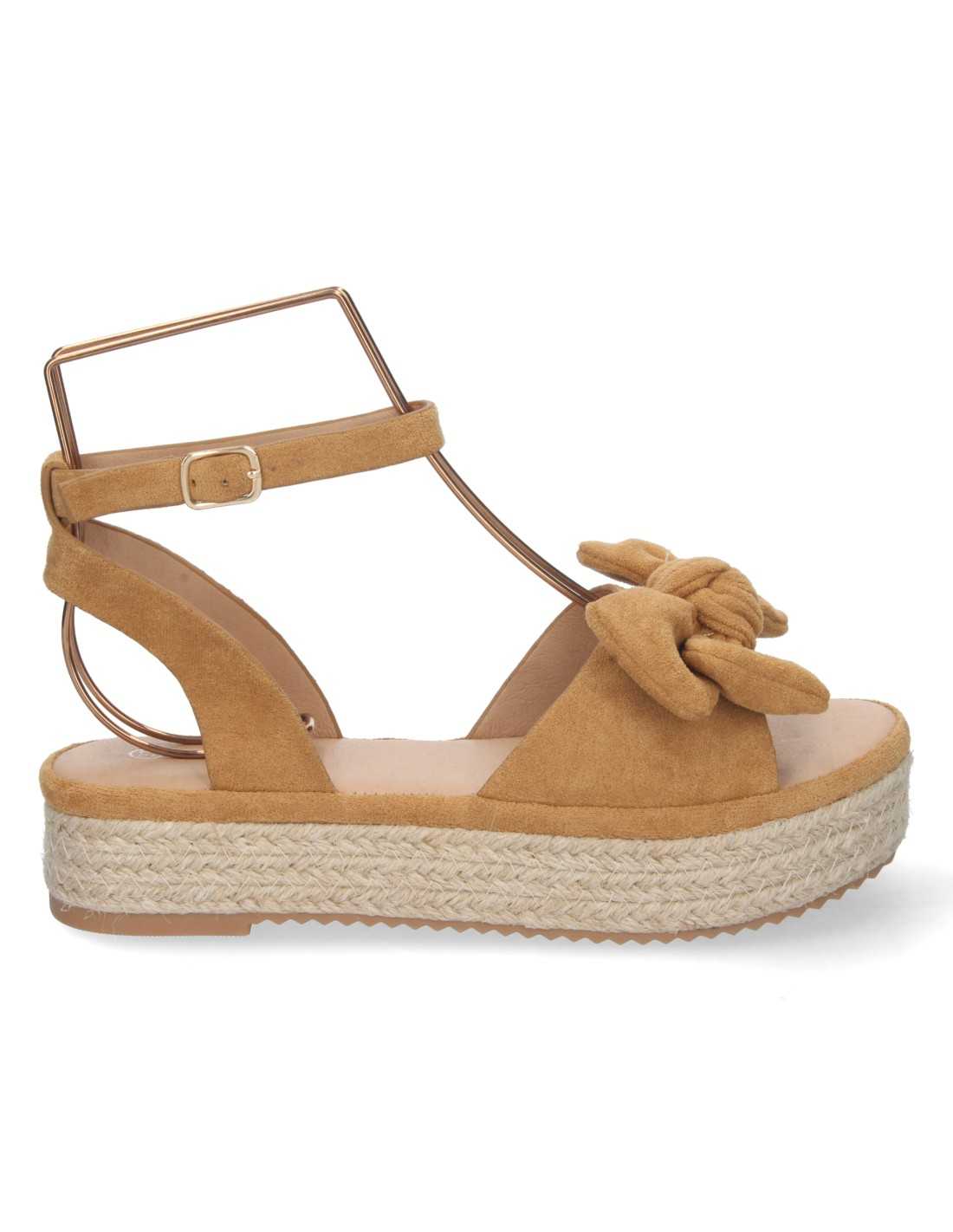 Sandalia de Plataforma, Forrada de Yute, con Lazo, y Cierre de Hebilla