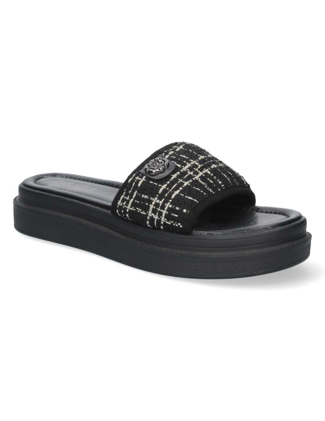 Sandalia de plataforma con empeine en tejido y adorno lateral