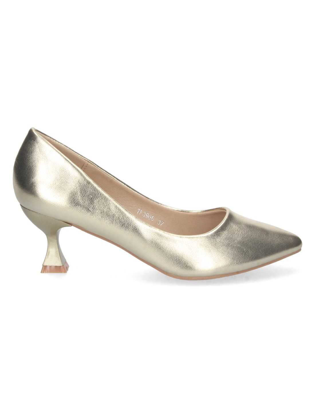 Zapato de tacón, estilo salón, con tacón de base ancha y bajito.