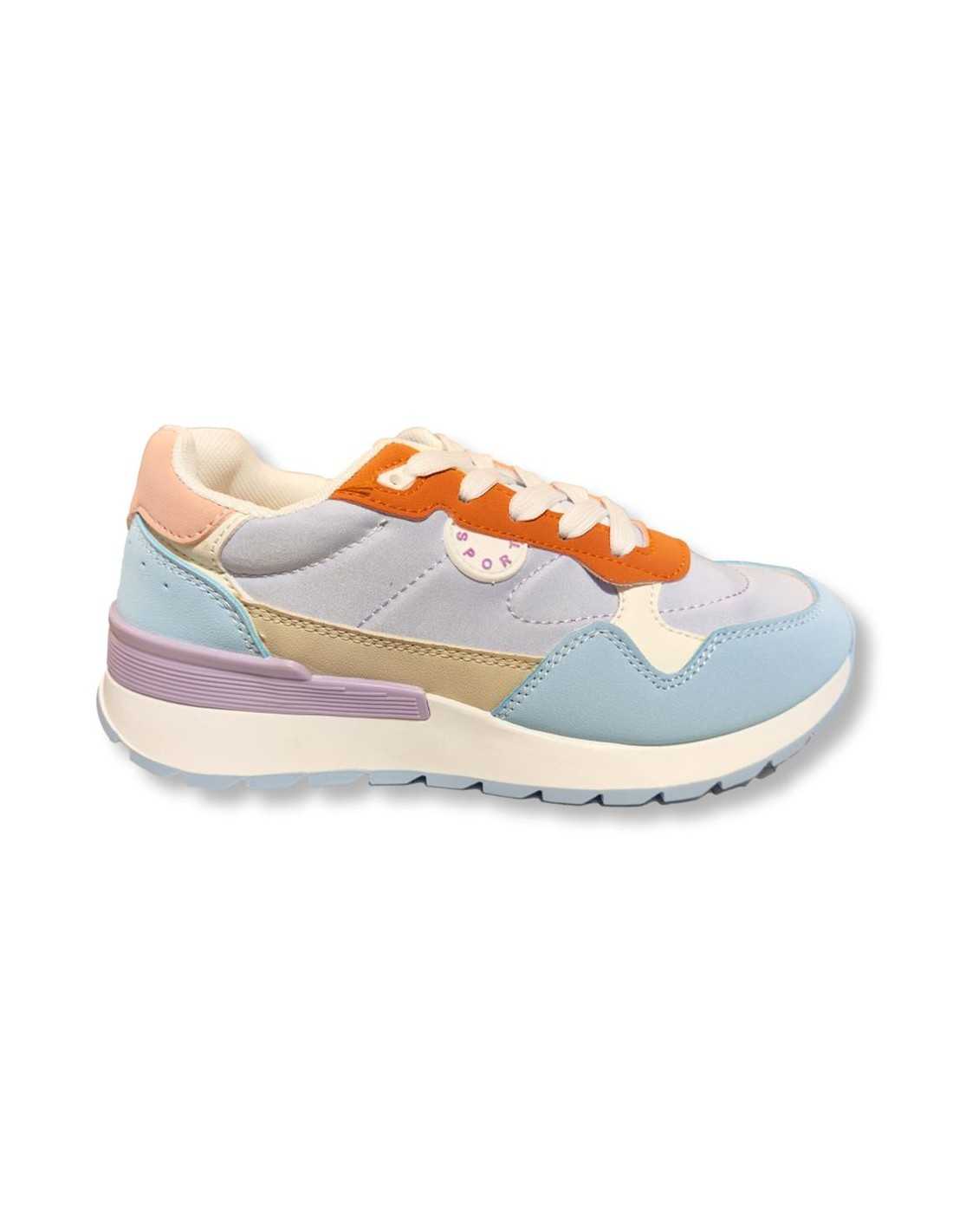 Sneakers with lace closure and combination of colors on the sole and shoe.