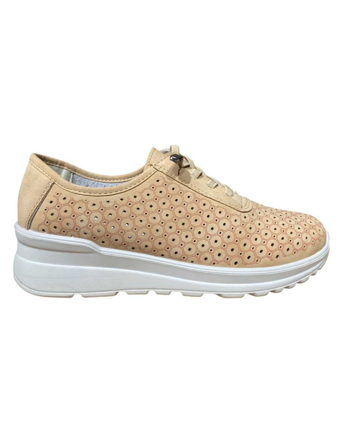 Sports shoes with matching lace-up closure, in openwork material and high sole.