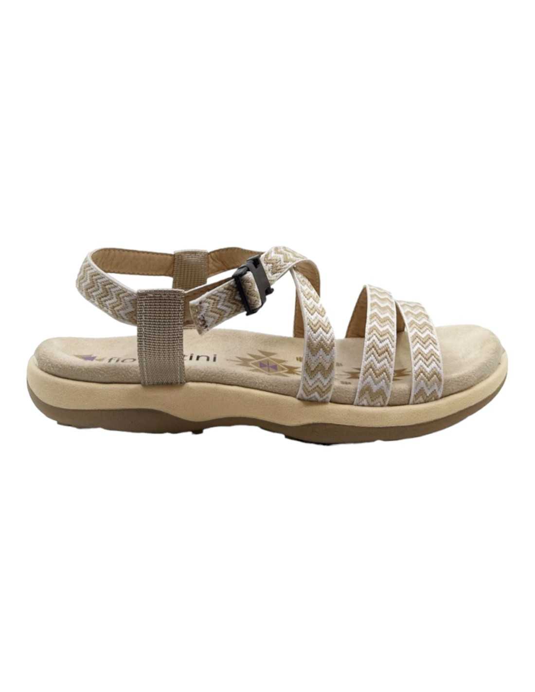 Sandálias rasas de trekking com tiras em tecido decoradas e fecho de plástico. Sola confortável.