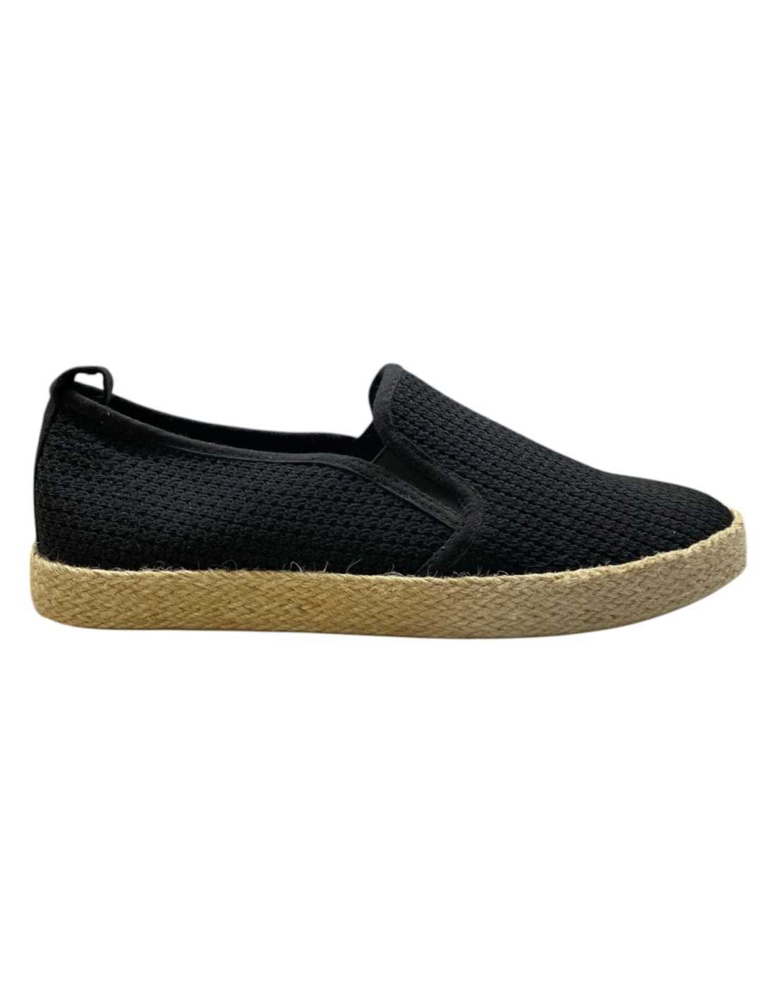 Alpercatas têxteis com elásticos laterais para facilitar a colocação.