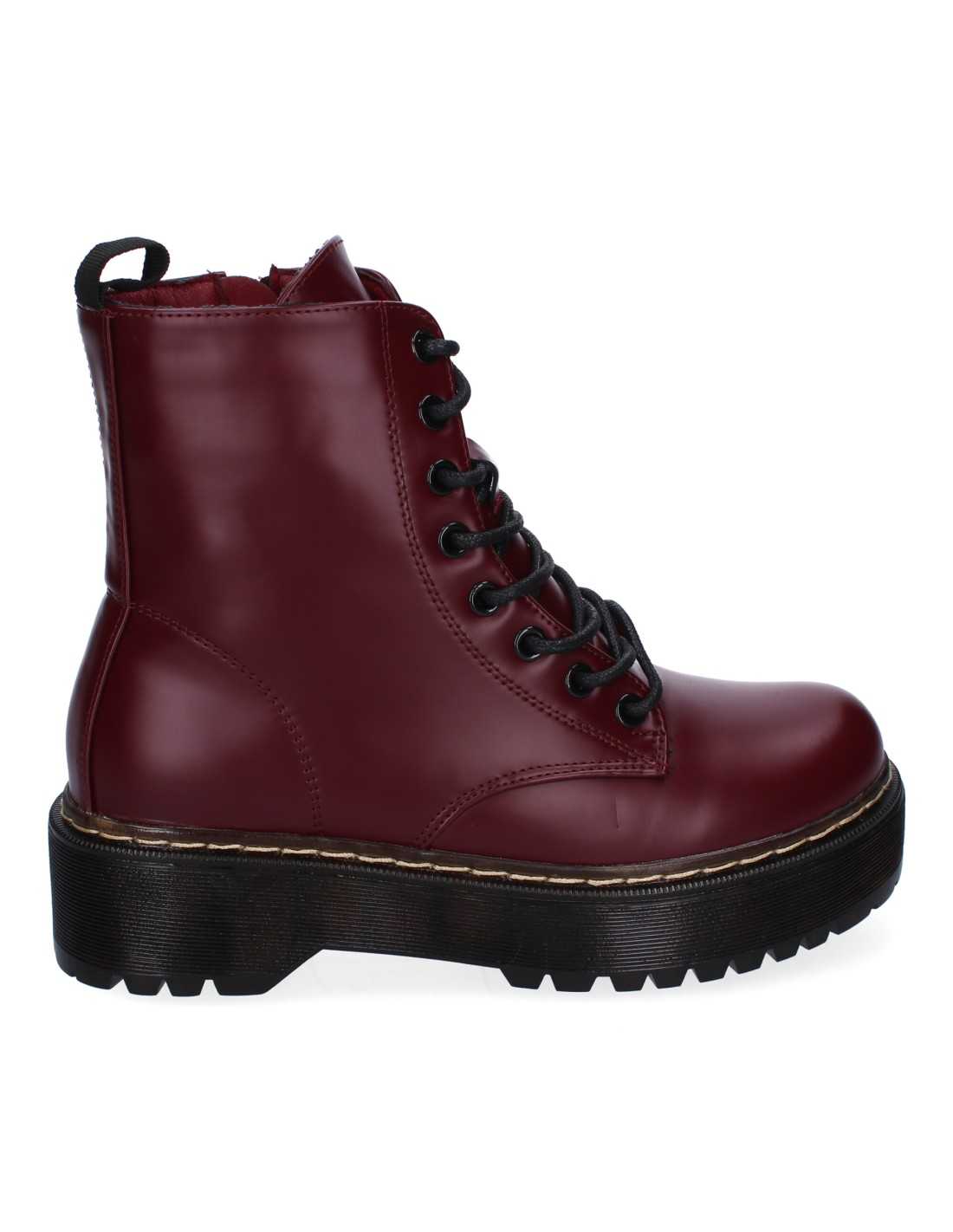 Botins estilo militar com sola plataforma dupla, feitos de couro sintético e fecho de cadarço. Um estilo bem jovial.